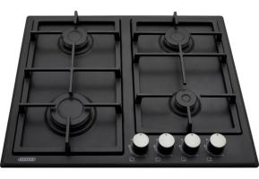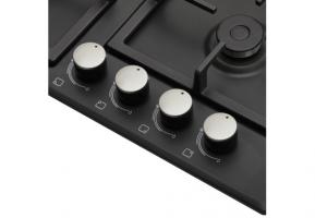 Имеет чугунные решетки, преимущество которых не скользит посуду. Данная модель имеет эмалированное покрытие черного цвета, является прекрасным выбором в сочетании с духовым шкафом черного цвета .