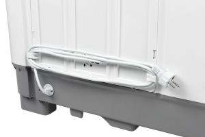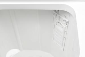 Корпус стиральной машины WMH-B65D выполнен из прочного поликарбоната белого и серого цветов. Для удобства крышка оснащена полупрозрачным черным иллюминатором. Все внутренние компоненты надежно изолированы от контакта с водой. Устройство соответствует II классу защиты от поражения током.