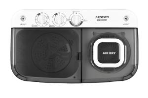 Объем бака — 6,5 кг. Таймер стирки рассчитан на 15 минут и на 5 минут для отжима.