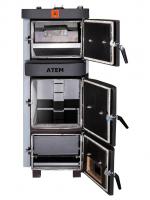 Первая секция обеспечивает легкий доступ к чистке теплообменника и выходного патрубка дымохода. Средняя секция предназначена для загрузки твердого топлива. И в низу находится третья секция с широкой дверцей для удобства чистки чугунных колосников. Пепел собирается в специальном поддоне, который расположен в зольной камере под колосниковой решеткой, что значительно упрощает процесс очистки агрегата.