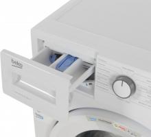 Автоматична пральна машина Beko WUE6512XWW виготовлена в традиційному білому кольорі з глибиною 40 см.